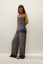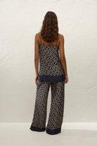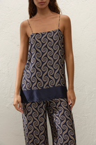 A 90s-inspired slip-style top, designed from a luxurious viscose satin fabrication, in a unique ocean swirl print. Hanging effortlessly off the body in a straight silhouette, it features a straight neckline and thin adjustable straps as well as side seam splits. The hem is finished with a navy-blue band. Style over the matching Jensen Pant for an elevated approach to everyday dressing.