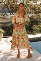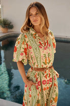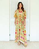 Embrace the warmth in the Label of Love Sunkissed Puff Sleeve Dress. Crafted from breathable Rayon, this breezy maxi glides effortlessly from lazy garden afternoons to beachside adventures. The cheerful pineapple print brings instant joy, while structured puff sleeves and a cinched waist create flattering silhouette magic. A crisp collar and front buttons deliver polished charm, and lined sleeves keep things light and airy. Practical side pockets and full-length hemline mean you're ready for anything—pair with espadrilles for daytime ease or elevate with wedges and gold accents for evening sparkle. Every twirl feels like a celebration.
