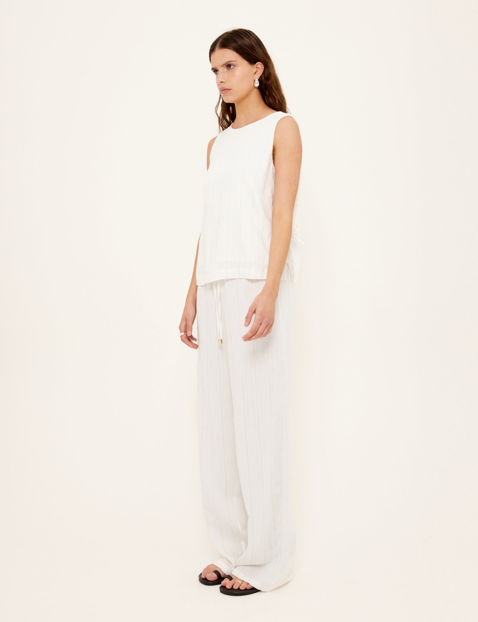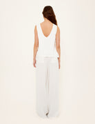 Designed for effortless summer dressing, the Bianca White Tie-Side Top pairs relaxed tailoring with feminine detail. Crafted from a lightweight viscose-linen blend, it features side ties, a deep V-back, and a clean, minimal silhouette that moves beautifully. Style it with the matching Bianca Skirt for a complete co-ord look.