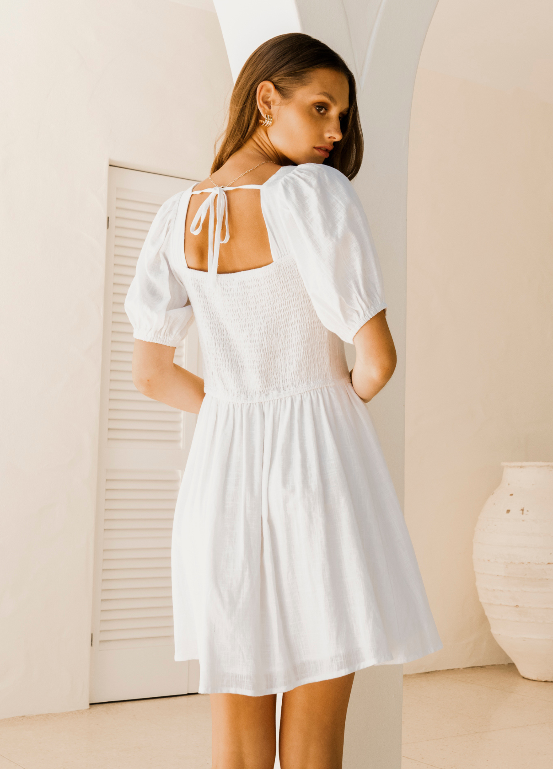 Tropical Dream - Lora Deluxe Mini Dress - White